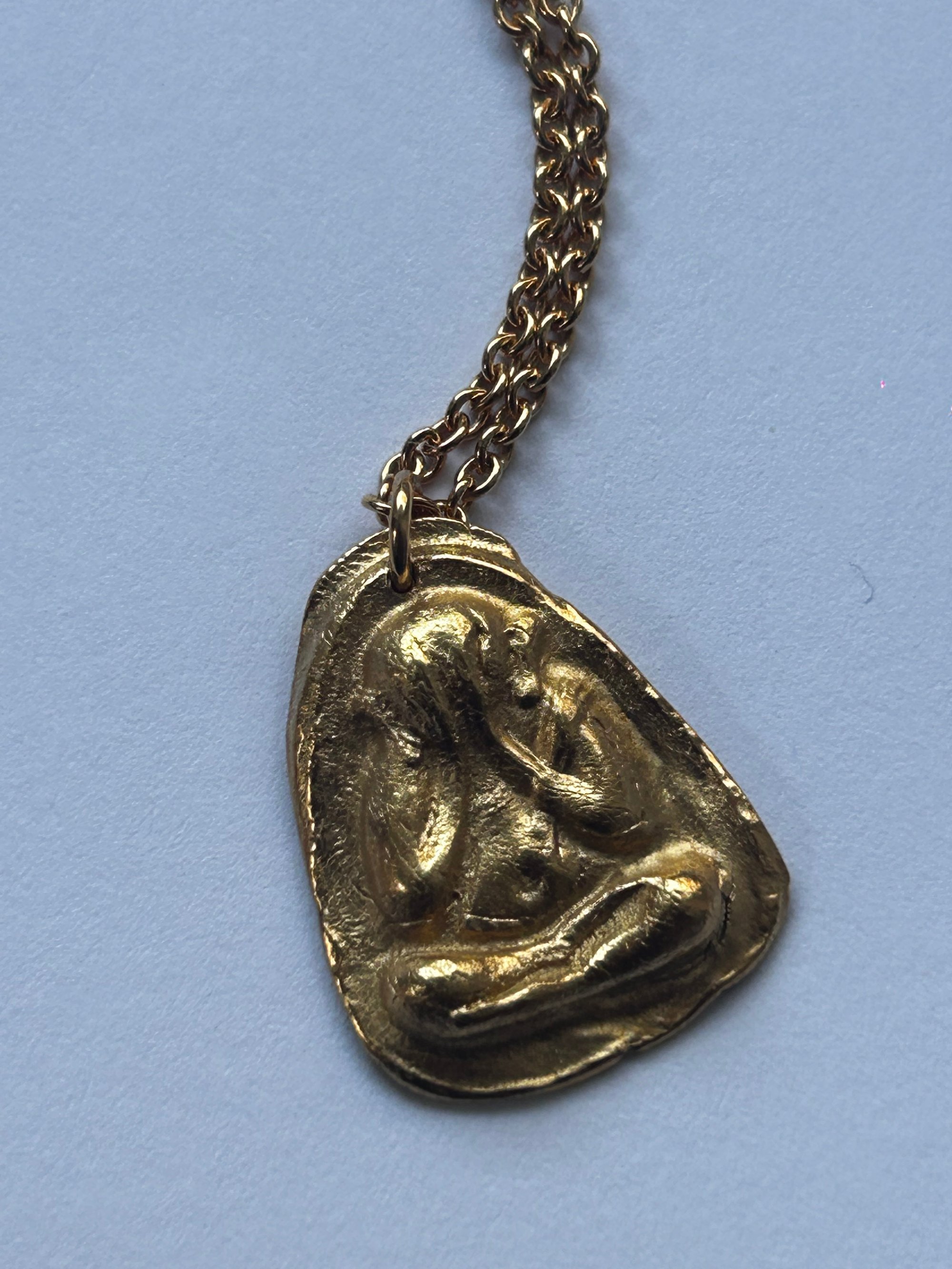 Der Anhänger ist aus feinem Silber gefertigt und mit 23 Karat Gold vergoldet, wodurch er eine warme, schützende Energie ausstrahlt.